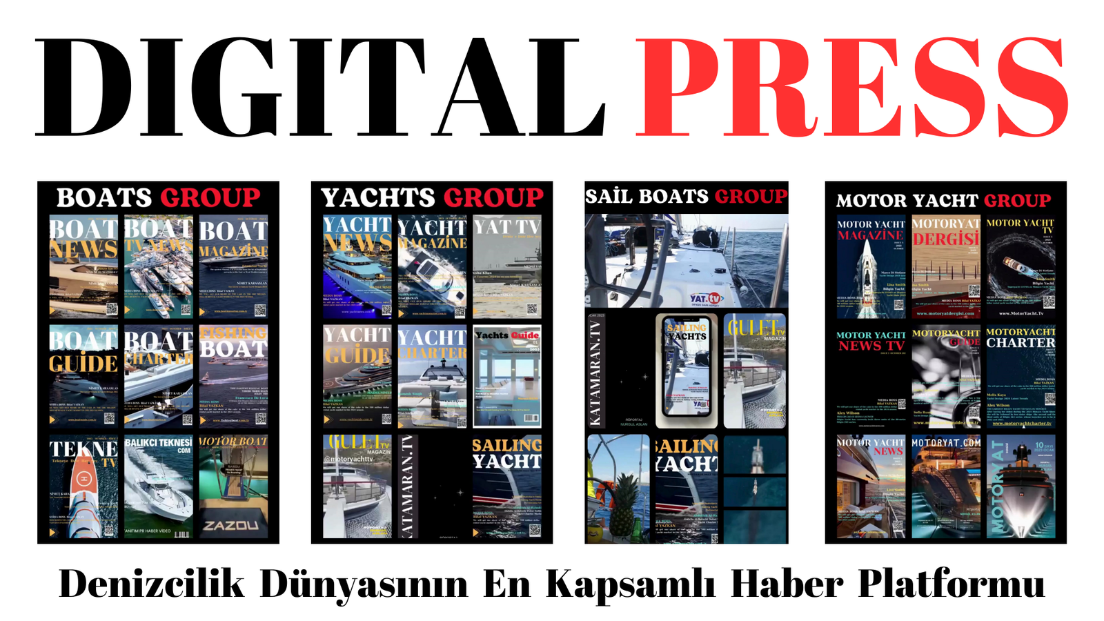 Digital Press, dört ana grup olan Boats Group, Yachts Group, Motor Yacht Group ve Sail Boats Group‘u bir araya getirerek, 50 markayı ve 70 web haber portalını entegre bir şekilde hizmete sunmaktadır. Bu geniş dijital ağ, denizcilik haberlerinin, ilanlarının ve e-ticaret ürünlerinin global denizcilik topluluğuna hızla ulaşmasını sağlamaktadır.